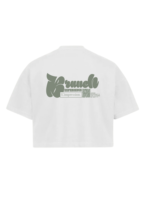 T-shirt Crop Blanc Brunch Experience X L'Impression Café